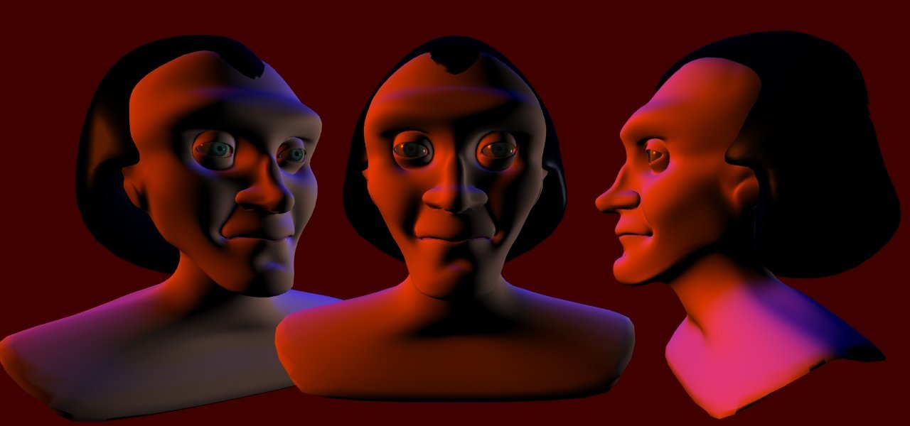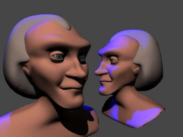 I still have the original models, and their creation date shows as 15 Dec, 2002. Modelling organic shapes in a computer is hard. Getting human shapes and especially human faces so that they don’t look off is difficult, and I think that was my first attempt at one since the Aussiecon 3 Opening Ceremony animation I did way back in 1999.